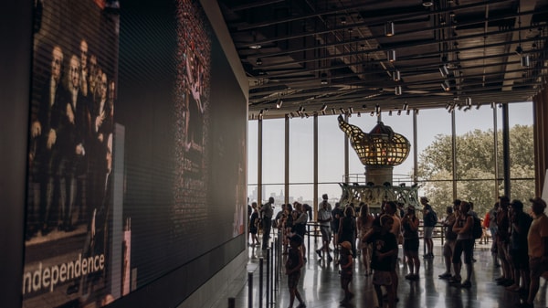 All guests must pass through airport-style security to go to the Statue of Liberty. Certain items are not permitted including any weapons, scissors, pocket knives, any sharp item, or tools. Large items such as suitcases and backpacks are not allowed. Food and drink are not permitted except water in a clear container.