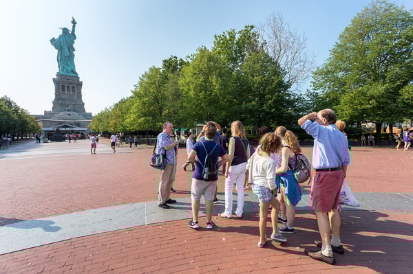All guests must pass through airport-style security to go to the Statue of Liberty. Certain items are not permitted including any weapons, scissors, pocket knives, any sharp item, or tools. Large items such as suitcases and backpacks are not allowed. Food and drink are not permitted except water in a clear container.